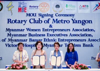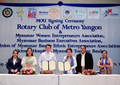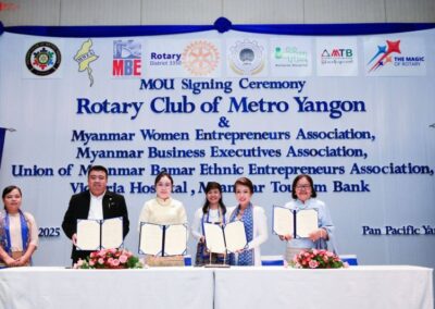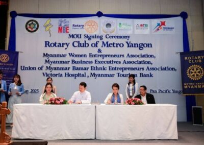 On Saturday, 31st May 2025, the Rotary Club of Metro Yangon (RCMY) proudly hosted a remarkable and breakthrough MOU Signing Ceremony at the Pan Pacific Hotel, Yangon—a historic moment of collaboration and shared vision.